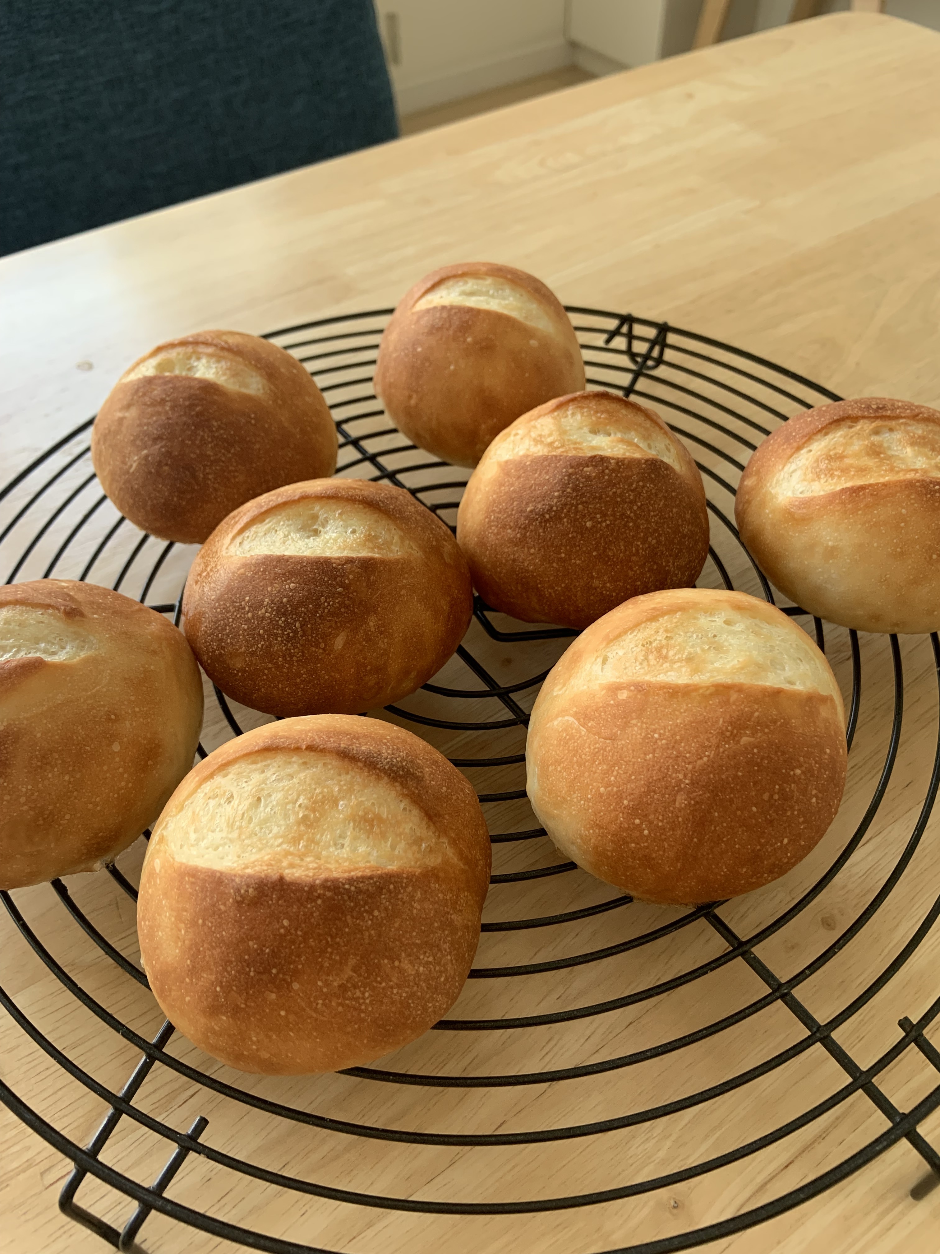 気がつけばもう4月も中旬💦 桜も散って今はハナミズキが綺麗に咲いてます 空気もカラッとしていて本当に気持ちの良い季節ですね今日は先日からのお気に入りレシピで塩パンを焼きました はるあんチャンネルというYouTubeで見つけたレシピなのですがとにかく簡単にできるんです こねない 塩パン で検索するとすぐ出てきます 思い立ったらすぐ焼ける! そしてすごーく美味しい😋 子どもたちにも大人気のパンです 仕事でも塩パンは作りますがやはりお店でも塩パンは大人気 バターが溶けて底がカリカリになって美味しいんですよね〜 これが家でも食べられるなんて幸せ〜 良いレシピに出会えて嬉しいです 今までパート先のパン屋さんでずっと成形の仕事をしてたんですが今月からミキシングの仕事も覚えることになり毎回ドキドキしながら働いています 成形は失敗してもそこまで大きなことにはならないんですがミキシングは失敗したら大変なことになっちゃうんでプレッシャーが半端ない💦水の温度や気温、湿度、生地の混ぜ時間により仕上がりが変わってくるので成形よりも難しいんですよねしかも機械で生地を捏ねつつ違う仕事も並行してやる必要があるのでとにかく段取りが大事昨日も大きな失敗をしてしまって落ち込んでました新しいことを覚えるってこの歳になると本当に大変ですけど幸い職場の方がみなさん優しくて心身ともに毎回助けていただいてますみなさんのエールに少しでも応えられるよう1日も早く仕事を覚えられるよう頑張らねば! 春は新生活が始まる方も多いと思います 最初はできないことばかりで落ち込むこともあると思いますが自分の成長を楽しめるのも実は今だけなんですよね 昨日より今日、今日より明日と愚直に少しずつ積み重ねていけたらいいなと思います さてと 今日は午後から次女の懇談に行ってきます いよいよ中3なので受験もあり今年はいつもと違う1年になりそうですが次女もまた日々成長中 あまり気負わずに自分らしく中学最後の年を楽しんでくれたらいいなぁ^_^ 親子ともに頑張ります! 今年はブログももう少し頻度をあげて更新できたらいいな最後まで読んでいただき どうもありがとうございました😊