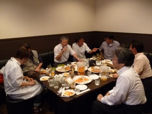 昨日は新横浜で大学のクラブのメンバの呑み会。M光先輩が、 第一級陸上無線技術士を「仕事で知識付けたから、受けてみよ~」って感じで受験して見事合格したことを、クラブのメーリングリストを通じてつぶやいたことに端を発し、今回の呑み会になりました。50を過ぎてから資格に果敢に挑戦ってことで、みんなから「すごいなぁ~」の感想。今後も何かの資格に挑戦してゆかれるということ、やっぱり「我らが先輩だ!」。 私はと言うと、その昔は部下に叱咤して「みんな受けろよ」なんていっているのだから「自分で率先しなきゃね」と挑戦していましたが・・・ ここ10数年はチャレンジしてないな~。もう頭回らないって言うのが理由だけど、「やってみようと何故思わないんだ!」と頭上で天使が怒っています・・・・・。 呑み会ですが、同期のS〇君が「新横浜なら出てこられる」といううことで場所は決定。同じく同期〇田君が幹事をやるということで計画をしてくれました。ところが私、仕事が押していて、19時30分に会社を出ます。M光先輩に「今出ました」とメールしましたが、開始時間は19時30分。間に合わない!(あたりまえだ!!)浜松町まで走り、品川で新幹線に乗って駆けつけました。 久しぶりの再会。みんなそれなりに元気。 先輩、後輩の関係性はそのまま。後輩は先輩を敬うが、時々その先輩を弄ったり。(私自身は弄られることが多い気がするが・・・・・まぁ、いいか)いい関係は継続しています。 この日はS〇君の誕生日。ってことで、幹事の〇田君、気を利かせて誕生日プレゼントを準備してくれていました。 (ナイス)卓球をやる時のユニフォームをプレゼント。 3時間、楽しい時間をすごしてお開きとなりました。M光先輩を囲んでの呑み会は、今日こられなかったメンバも集めて、また近いうちに催されると思います。