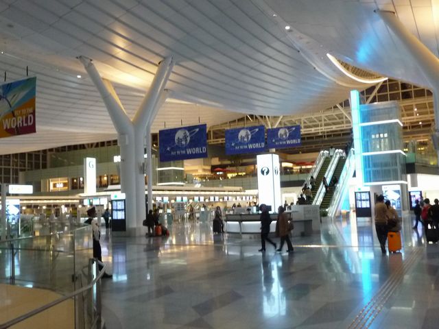 12月7日(火)、いよいよホノルルに向かいます。(本当は12月8日(水)0:30 take offだから明日なのですが・・・)今回は羽田から出発。モノレールの改札を抜けるとすぐにチェックインカウンタが見えます。 その奥は出国ゲート。手荷物検査の入り口です。そちらからパチリ。エスカレータで上に行くと、江戸の町並みを模した感じのショップが並びます。思ったほどの大きさではありませんでした。 今、ANAのラウンジにいます。シャワーを使わせてもらいました。そのままだったら丸2日風呂につからない状態でしたので、さっぱりいい気分です。食事もここでとられます。まずはビールを一杯。結構おいしいです。機内食よりいいなぁ~。 この日記アップして、さぁもう一杯 行ってきま~す