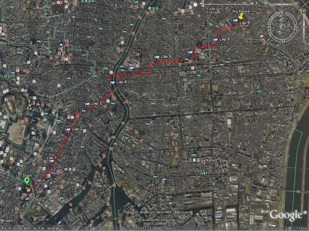 4日土曜日、荒川土手を13.1km走りました。 今日日曜日は、また会社で一仕事。ここのところ休日仕事して、「帰りに魚金で一杯」でしたが、今日は帰宅RUNに挑戦。 新橋駅付近を17時20分ごろスタート。夕方は風があって気持ちいいです。途中、両国を過ぎた辺りでペットボトルで給水タイム。亀戸天神辺りでまた休憩。 我が家まで、9.21km。53分(Elapsed Time:1時間4分) 一度やってみようと思っていました。背中に行きに着ていたポロシャツ、ジーンズ、文庫本、その他、何やらをランニング用バックパックに入れて走ったけれど、バッグがパンパンになっていた。今度は中身減らすようにしよう。 今度は平日にやってみよう。