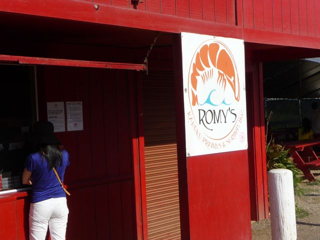 ドールを出て、さらに北へ。ハレイワに寄ってブラブラ。松本シェイブアイスを・・・店に入っただけで買わずに・・・ハレイワを出てカメハメハHighwayを走り、カフクでエビを食べました。ロミーズ・カフク・プラウン・シュリンプ すごいニンニクの量です。香ばしくちょっと焦げた感じです。プラウンとシュリンプがあります。プラウンは淡水のエビでシュリンプは海水のエビらしい。(「プ」です・「ブ」ではありません。「ブ」だったら、店の名前がブラウン・シュリンプになって、焦げたニンニクが茶色だから。プラウンシュリンプ?ってなるところですが・・・)クヒオ通りにあるブルーウォーターシュリンプ&シーフードとはまた違ったテイストのエビでした。