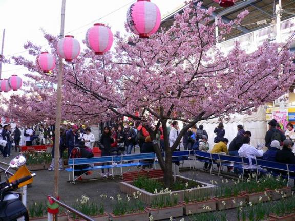 三浦国際市民マラソンに行ってきました。この大会、昨年、一昨年と天候に恵まれなかったようですが、今回(第29回)は晴れ、気温11.7℃で、暑いくらいでした。長袖着て走りましたが、半袖、ノースリーブでもよかったです。朝5時半に家を出て、三浦海岸駅に降り立ちました。駅前にはなんと桜が咲いています。着替えをして海岸線に出ると、砂浜には地元の食べ物や海産物などを「みうらうまいもの市」と銘打って販売しているテントが並んでいます。こちらは「トロちまき」。(走った後に2ついただきました。ペロッて食べちゃいました。)大会の看板をバックに写真を写すところです。この大会はホノルルマラソンとの姉妹提携レースということで、ホノルルマラソンの絵も右側にあります。(特産物の大根も並べてありました・・・)5kmレース、10kmレースのスタートの後、9時37分、ハーフマラソンのスタートです。4kmぐらいから登りが続きます。かなりキツイ。走ってんだか歩いてるんだかわからないスピードになっちゃている。「いやぁ~まいった。これじゃ2時間切りできないのでは・・・?」と不安がよぎります。行けども行けども登りのように感じ、周りの地形を見渡し、「もう丘のようなのないよな」と祈りながら走りました。登りがあるということは降りがあるということで、降りにはスピードを上げて、登りの分のタイムロスを取り戻そうします。8kmを越えると城ヶ島が見えます。城ヶ島大橋を渡るところは、上から海と地形を見下ろす絶景です。(カメラは持っていましたが、写してる余裕なんてありませんでした)海を見下ろすということは、城ヶ島に入ったら降りです。ですが、島から戻るときは当然登りになるわけで・・・島から戻って再び城ヶ島大橋を渡る時には、もう景色さえも見る余裕はなくなっていました。12km地点、宮川大橋の前方に風車があります。友達の風写さんが風車を追っかけているので、「写真でも撮ってあげよう」・・・・・なんて余裕はありません。16km辺り。剱崎、松輪でまた登り(そういえばこの辺に船宿に鯛釣りによく来たな~、釣れなかったけど・・・)。降りはまた飛ばして帳尻を合わせてのこり3kmをヘロヘロになってゴールへ・・・・・結果は、公式タイム 1:59:43 ネットタイム 1:56:28 なんとか2時間切り。2月の走行距離44kmの割にはよくやったほうかな。参加賞のTシャツ前と後魚と大根のイメージね。参加賞に大根一本もらって帰りました。
