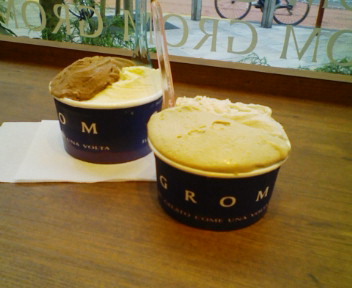 やったね~~~~~~全然並んでないじゃんイタリアからやってきたGROMシルバーウィーク明けの平日とはいえ、2日休めば大連休とか言ってる木曜日の昼下がり‥。ちょろっと見てみると行列 なーーーーーし待ち時間 なーーーーーーーしだったので、食べちゃいました噂のジェラードそれにしても待ち時間なさ過ぎでイマイチシステム理解する前にオーダーしなくてはならず・・え?へ?は?いやぁ。やばいですこれって加齢のせいでしょうか・・・ガクフレーバーも普通のアイスクリームやさんのようにケースの中のをみて選ぶというよりボードに書いてあるメニューから選んだほうがいいみたいよサイズはSMLと3種類、Lだと3種類フレーバーを選べ、それ以外は2種類カップとコーンを選びフレーバーはメニューから決めましょうこれが今回学んだことです今度はそれを踏まえ食べたいですというわけでフレーバーセレクション いまいち失敗の巻でした・・・