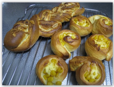 月曜日に焼いたベーグルがあんまりにもキレイにできて(写真ないし)調子こいて今日も粉コネコネ基本のバタロール生地をアレンジコーンパンと三つ編みパンのツォップってパンとワンコのクッキー焼いたぞ今回は黒ゴマと黄な粉入り暑いと発酵進むの早くていんだけどオーブンつけてからの暑さったらないよ強力粉、たくさん買ってこよっと