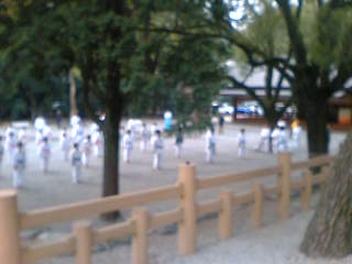 今朝、集会所を使いたいとの申し出があったので、カギを開けに・・・天気もいいし、ついでにウォーキングでもしようと「熱田神宮」まで・・・約30分ほどで到着~やはり日曜日、人出が多いなァ~鳥居を三つほどくぐると本殿に・・・近づくにつれて何やら威勢のいい声が・・・ 携帯なのでちょっと写りが・・・これって「奉納稽古」なのかなァ~全員で型の構えと組み手があり、そのあと有段者(二人)の模範演技・・・大先生みたいな人が子ども達に「もっと拳をしっかりと構える」って気合入れてた・・・そして模範演技が終わると、小さな子ども達の組み手に・・・このとき座ってた子ども達が移動する時にみんなの歩き方が変・・・よく見ると全員「裸足」で、当然下は“ジャリ”が敷き詰めてある・・・声は出してないけど聞こえてきそう「イテッ!イテッ!」って・・・今日は会社の役員全員でお参りに来てる人が多かったなァ~今度は早朝にまたゆっくりと行ってこよっと・・・あそうそう、これが「初詣」になったんだった~ 応援お願いねェ~ こちらをクリックよろしこ~ お陰様で47位ですよ~