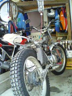 画像は風呂掃除とはまったく関係ありませんが、整備中のTL125のエンジンを久しぶりにかけてみたところ。画面の上に見える仮設ガソリンボトルはペットボトルを加工して作った臨時ガソリンタンク。名づけて「点滴ボトル」でした。製作時間は約20分でした。
