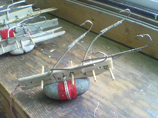 使い方は、骨の部分に添ってえさ(サンマなど)をくくりつけてタコのいそうなところに沈めます。そして船上から箱メガネでのぞきながら、えさを摂ろうとタコが仕掛けにかぶさってきたタイミングを見計らってグイッとひもを引けば「一丁あがり!」というわけです。