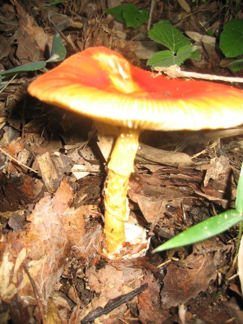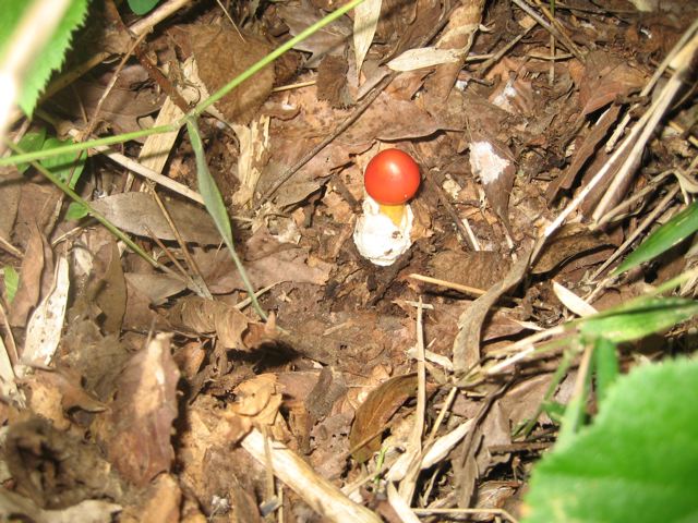 最近は雨が多いせかキノコがどどっと出ています。毎朝のお散歩道にあるのですが、名前が「たまごたけ」しか解らず、,,頼りない限りです。これが「たまごたけ」下の方にたまごの殻のようなものが見えます。圧巻は、初期です。白い卵から真っ赤なまるいたまごのようなキノコが出て来るんです。それが、、伸びて来て傘が開いてこのような形になります。なかなかその瞬間を見る事が出来ません。夜中に出て来るのかな?どれもこれも、食べられそうにないものばかりで、、、あ~~まったけでてこ~~イ。ここはキノコの宝庫なのでその気になればキノコハカセになれそうですけどね。