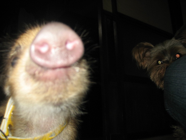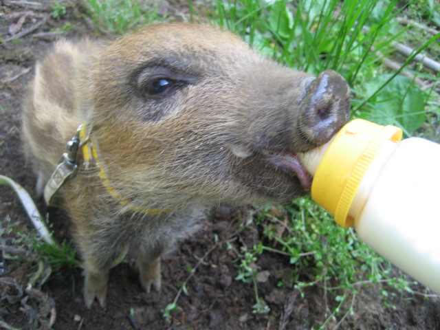 A wild baby boar has lost on the street near my house.He is born early so very small.I'm not sure that I should do something.Then I'm going to take care him .I'm bottle-feeding the baby at many time in each day.Today is the third day.But when he became a huge boar I couldn't take care him.何かいるでしゅ。。。。。。ママかな?ママ????ママじゃないでしゅよ!!!フェアリ-ちゃん仲良くしてあげてね。でも、、、、ちょっと、、、、、困りましゅ!