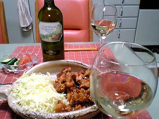 プーリア州で造られているプリミティーヴォを開けました。合わせたのは、牛肉のサイコロステーキです。プリミティーヴォは、見た目と違い濃厚な味わいで、タンニンの中にビターを感じます。牛肉とは相性抜群です。逆に牛肉のような、重い料理としか合わないと思います。特徴があって良いワインです。