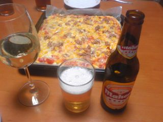 Panasonic SD-BMS101-SW(シルバーホワイト) ホームベーカリー (1斤)本日の夕食は手作りピザ。生地はホームベーカリーで作り、ピザソースは私がホールトマトから作りました。イタリアではピザとビールが定番です。私はスペインのマオウビールと白ワインを合わせました。しかし、ダイエット中とはいえ、この量では栄養失調になってしまいます。夕食、第2弾。ピザで余ったソースに絡めたパスタにベシャメルソースをかけ、その上にチーズを乗せて溶かしました。邪道なパスタですが美味しい!また、明日から頑張ろう!