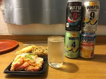 本日は那覇のホテルで飲んでいます。スーパーでオリオンビールのチューハイ、ビアカクテルと天ぷらを購入しました。沖縄の天ぷらは大阪のものと違って、衣が分厚くてフリッターのようです。今度、家で沖縄の天ぷらを作ってみたいと思います。【PR】アメリカから輸入したカッコ良い腕時計を置いています。お求めはまっちんNO1ショップで!
