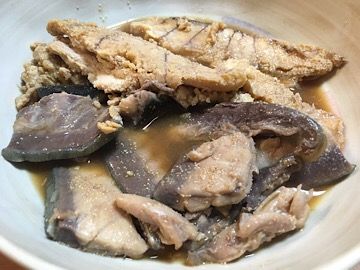 腹に卵が入っていたので、アラと一緒に煮付けにしました。