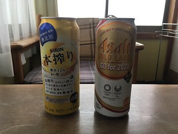 お楽しみの夕食前に、海を見ながらビールとチューハイをいただいています。