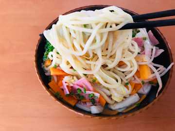 業務スーパーで買った中華麺2玉を使って、タンメンを作りました。