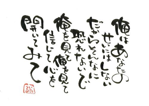 昨日は朝から伊丹で【楽書(らくがき)セミナー】でした〜10人の女性にお集りいただき、自宅サロンで開催させていただきました〜主催してくださったルミさん、来てくださった皆さん、ありがとう〜^^人は常に選択して生きてる。自分中心に考えると「選択」してるつもりになるけど、実は「選択」されてる立場でもあるってことを知らなきゃあかん。必要とされるのか、必要とされていないのか。必要としてるのか、必要としていないのか。どの部分を必要とされ、どの部分を必要とされていないのか。相手のどの部分を必要とし、どの部分を必要としていないのか。考えるといろいろあると思う。それはビジネスでも恋愛でもそう。自分の知らないところで様々なジャッジが行われている。「必要なし」とジャッジされた方はショックを受ける。「騙された・・・」「裏切られた・・・」自分を守るために様々な解釈をする。でもそれは自分の都合。相手にとっては「騙した」訳でもなく「裏切った」訳でもなくただ「選択」しただけだと思うから。。今日はジャッジされる立場になって感じてみよう。俺にはできないことがある。俺には満たせないことがある。素直に謝るわ、ごめんね。素敵な奇跡は起こり続けます!【神戸】【横浜】【広島】【岡山】【仙台】【大阪】【東京】 全米で7,000億円を生み出した実践的なマーケティング手法を【無料】で学べる2時間半。今なら「売れる文章の設計図(コピーライティング)のCD」をプレゼント中!→ http://www.seminars.jp/user/seminar_d.php?sCD=38864&iv=aflimi2592... こんな迷路に、はまっていませんか?会社の売上が「ガクッ」と落ちた・・・新規顧客が増えていない・・・常に倒産する恐怖に怯えている・・・従業員のリストラも・・・そんな迷路から抜けだす方法がたった【 1つ 】だけあります。来月倒産と言われていてもまだ間に合います→ http://www.seminars.jp/user/seminar_d.php?sCD=38864&iv=aflimi2592想定外収益9,000万を生み出したセミナーですこちらのセミナーには、【本気で】売上を伸ばしたい方のみご参加下さい。⇒ http://www.seminars.jp/user/seminar_d.php?sCD=38864&iv=aflimi2592今よりも違う結果を求めるのであれば、まずは今の現状を変える必要があります。ですから、「変化」を受け入れられる人、または現状の問題を本気で解決したい人でなければきっとコチラのセミナーに参加する意味はないでしょう・・・。しかし、もしあなたが変化を受け入れる覚悟があるならば、このセミナーに参加する事で、売上を伸ばすヒントを幾つも手に入れることができるはずです。実際、本気で今の現状を変えようとセミナーに参加された経営者の方は、このセミナーがきっかけとなって、今までの収益に加え、9,000万円の収益を生み出すことに成功しました。変化を受け入れ、今以上の成功を掴みたい方はこちらのセミナーにご参加ください。⇒ http://www.seminars.jp/user/seminar_d.php?sCD=38864&iv=aflimi2592やっぱグルーポンって安くて便利よね~買いたいものが50%オフで買えるって凄くない?◇◆◇グルーポン◇◆◇ありがたいね~むっちゃ感動のショートムービー『承認』言霊屋いたるのアメリカムービー(1)言霊屋いたるのアメリカムービー(2)小さなバスケットヒーロー1小さなバスケットヒーロー2ニックさてさて、今日は何位?ブログランキング熱復活しました!徐々に上がってきています!< 注意深くお金を使うために >私たちが商品を買うために支払ったお金は、世界のどこかで、誰かを迫害したり殺したりするために役立っているかもしれません。私たちには注意深くお金を使う責任があります。注意深くお金を使うために!●日本人口1億3千万人。割り箸の消費は年間で250億膳と言われています。97%が輸入、木造建築2万件分にも相当します。樹木が伐採されれば雨が降らず砂漠化が広がります。すると植物は育ちません。同じ地球のどこかで1日に4万人の人が餓死しています。割り箸の消費を止めることで救われる命があるのです。できることから始めてみませんか。◇◆◇ 『お知らせ』 ◇◆◇ついに実現しました。携帯電話専用『いたるの世界』動画で見れます!是非、ご覧下さい。『地球が100人の村だったら』★★★ 応援してます!★★★心に響く歌詞、歌声を聴かせてくれます。いたるはサクラシンマチを応援しています。是非、みなさんも聴いてみてくださいね。◇◆◇mixiです!◇◆◇ミクシーにいる人は是非、遊びに来てくださいね。mixiって何?って言う人はメール下さればご招待いたします!◆◇◆◇いたるファン倶楽部です!◇◆◇◆素敵な奇跡は起こり続けます!