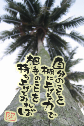 今日もいい天気やね〜セミの鳴き声が夏を彩るいい感じ^^人って自分目線が日常やん?人の立場に立って見たり聞いたり感じたりができん事が多い。もちろん、できるときもあるんやで、でも気を抜くと自分目線になる。言葉遣いにも表れる。「普通は〜やんか」「◯◯って〜やろ」「みんなそうやん」自分の立場から見えてるものが、みんな同じものを見てると思い込んでしまう。俺にもよくあること。。でも、実はみーーーーーんな違うねん。「一人一人が違う」って前提に置いた方がコミュニケーションはうまくいくし、相手のことを思いやれるってことが格段に増えるもん。俺、思うねんけどねフェイスブックとかブログとかツイッターって凄いと思う。それによって繋がりが生まれ、愛と感謝と喜びを生み出すことができるツールやと実感してる。でも、これを利用して自己利益とか自己重要感を満たすことを剥き出しにしてると大きくズレていくんよね〜文字の世界を軽んじて偽りが膨張してしまったり、争いごとが起こっては本末転倒。「許せない!」「訴える!」そう思われる方には必ず原因がある。そして、そう思う方は残念ながら同じ器。「あの大嫌いなヤツと同じ器な訳ないでしょっ!」って怒りがこみ上げて来る人がいるかも知れんけど、笑えない時点で同じ器に見えてしまうんよね。潜在的にね、「自分のためにこいつをどう利用しようか・・・」っていつも考えている人同士が出逢うとかなりの確率でケンカが生じてる。「なんで俺(私)のどこが間違ってるって言うんやーーっ!」ってムキになり合ってる。それって魂レベルでは大親友やで^^そんな時こそ、自分を棚に上げる力で相手を持ち上げてみようと思うねん。「この人のために自分は何ができるのかな?」って。持ち上げて、役に立って、それでいて自分が何も感じなければ「出逢い」じゃなく「すれ違い」やったってことやもん。俺も人間やからムカつくこともあるし、イライラすることもあるけど、そんな感情よりも、やっぱ幸せに満たされたいし、愛し愛されたいし、「あなたと出逢って良かった」って言われたいもん^^そのために今日も生きようって思う!そんなことを考えてるとワクワクしてくるわ。幸せって自分次第なんやね^^素敵な奇跡は起こり続けます!感動します。「車窓に映った親切」むっちゃ感動のショートムービー『承認』言霊屋いたるのアメリカムービー(1)言霊屋いたるのアメリカムービー(2)小さなバスケットヒーロー1小さなバスケットヒーロー2ニックさてさて、今日は何位?ブログランキング熱復活しました!徐々に上がってきています!< 注意深くお金を使うために >私たちが商品を買うために支払ったお金は、世界のどこかで、誰かを迫害したり殺したりするために役立っているかもしれません。私たちには注意深くお金を使う責任があります。注意深くお金を使うために!●日本人口1億3千万人。割り箸の消費は年間で250億膳と言われています。97%が輸入、木造建築2万件分にも相当します。樹木が伐採されれば雨が降らず砂漠化が広がります。すると植物は育ちません。同じ地球のどこかで1日に4万人の人が餓死しています。割り箸の消費を止めることで救われる命があるのです。できることから始めてみませんか。◇◆◇ 『お知らせ』 ◇◆◇ついに実現しました。携帯電話専用『いたるの世界』動画で見れます!是非、ご覧下さい。『地球が100人の村だったら』★★★ 応援してます!★★★心に響く歌詞、歌声を聴かせてくれます。いたるはサクラシンマチを応援しています。是非、みなさんも聴いてみてくださいね。◇◆◇mixiです!◇◆◇ミクシーにいる人は是非、遊びに来てくださいね。mixiって何?って言う人はメール下さればご招待いたします!◆◇◆◇いたるファン倶楽部です!◇◆◇◆素敵な奇跡は起こり続けます!