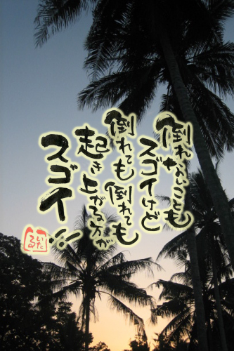 今日から8月やね。気持ち新たに毎日を楽しんでいこっ!転んだことのない赤ちゃんはおらん。転んで立ち上がろうとせーへん赤ちゃんもおらん。だから歩いたり走ったりでけるようになってん。間違いを犯したことのない人はいてへん。間違いから学習しない人もいてへん。だから知恵が育まれ成長してきた。大切なのは、転ばんことでもなければ、間違わんことでもない。モメゴトを起こさんことでもなければ、失敗せーへんことでもない。出来事のあとに「どう動くか」やねん。すべては、自分にとってベストな選択!今日も素敵な奇跡は起こります!感動します。「車窓に映った親切」むっちゃ感動のショートムービー『承認』言霊屋いたるのアメリカムービー(1)言霊屋いたるのアメリカムービー(2)小さなバスケットヒーロー1小さなバスケットヒーロー2ニックさてさて、今日は何位?ブログランキング熱復活しました!徐々に上がってきています!< 注意深くお金を使うために >私たちが商品を買うために支払ったお金は、世界のどこかで、誰かを迫害したり殺したりするために役立っているかもしれません。私たちには注意深くお金を使う責任があります。注意深くお金を使うために!●日本人口1億3千万人。割り箸の消費は年間で250億膳と言われています。97%が輸入、木造建築2万件分にも相当します。樹木が伐採されれば雨が降らず砂漠化が広がります。すると植物は育ちません。同じ地球のどこかで1日に4万人の人が餓死しています。割り箸の消費を止めることで救われる命があるのです。できることから始めてみませんか。◇◆◇ 『お知らせ』 ◇◆◇ついに実現しました。携帯電話専用『いたるの世界』動画で見れます!是非、ご覧下さい。『地球が100人の村だったら』★★★ 応援してます!★★★心に響く歌詞、歌声を聴かせてくれます。いたるはサクラシンマチを応援しています。是非、みなさんも聴いてみてくださいね。◇◆◇mixiです!◇◆◇ミクシーにいる人は是非、遊びに来てくださいね。mixiって何?って言う人はメール下さればご招待いたします!◆◇◆◇いたるファン倶楽部です!◇◆◇◆素敵な奇跡は起こり続けます!