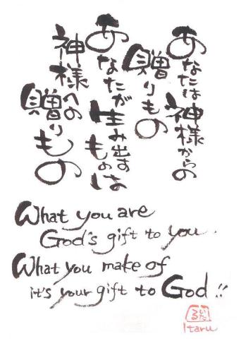 昨日から飛騨高山に初上陸してます。今日はむっちゃ雰囲気のある場所で【楽書(らくがき)セミナー】でっす。うほほーーーーーーーーっい!生き物って成長する。生き物って衰退する。どっちがいい?俺、成長がええ。あなたは?これって欲求。純粋な欲求。欲求は成長のエネルギー源やねん。「もっと、もっと、楽しみたい!」「もっと、もっと、成功したい!」「もっと、もっと、充実したい!」「もっと、もっと、認めてもらいたい!」「もっと、もっと、若返りたい!」「もっと、もっと、理想に近付きたい!」「もっと、もっと、金儲けしたい!」「もっと、もっと、誰かの役に立ちたい!」「ずっと、ずっと、続いて欲しい!」「もっと、もっと」「ずっと、ずっと」って言うた方が伝わる。欲求って本能やし、DNAに刻まれてる純粋なものやと思うねん。だからスポーツ見て感動すると思うねん。一生懸命、一心不乱な人を見たら涙が溢れてくると思うねん。「もう歳だから・・・」「これ以上、求めてないし・・・」「お金儲けはいいよ・・・」「夢はないし・・・」「自分さえ良ければそれでいい・・・」って言葉に感動は無いやん。「感謝」の心を育てるために「足るを知る」って大事。それと「成長」するための「欲求」は違うと思う。「もっと、もっと!」「ずっと、ずっと!」今日も感動を求めて^^y素敵な奇跡は起こり続けます!感動します。「車窓に映った親切」むっちゃ感動のショートムービー『承認』言霊屋いたるのアメリカムービー(1)言霊屋いたるのアメリカムービー(2)小さなバスケットヒーロー1小さなバスケットヒーロー2ニックさてさて、今日は何位?ブログランキング熱復活しました!徐々に上がってきています!< 注意深くお金を使うために >私たちが商品を買うために支払ったお金は、世界のどこかで、誰かを迫害したり殺したりするために役立っているかもしれません。私たちには注意深くお金を使う責任があります。注意深くお金を使うために!●日本人口1億3千万人。割り箸の消費は年間で250億膳と言われています。97%が輸入、木造建築2万件分にも相当します。樹木が伐採されれば雨が降らず砂漠化が広がります。すると植物は育ちません。同じ地球のどこかで1日に4万人の人が餓死しています。割り箸の消費を止めることで救われる命があるのです。できることから始めてみませんか。◇◆◇ 『お知らせ』 ◇◆◇ついに実現しました。携帯電話専用『いたるの世界』動画で見れます!是非、ご覧下さい。『地球が100人の村だったら』★★★ 応援してます!★★★心に響く歌詞、歌声を聴かせてくれます。いたるはサクラシンマチを応援しています。是非、みなさんも聴いてみてくださいね。◇◆◇FaceBookです!◇◆◇フェイスブックにいる人は是非、遊びに来てくださいね。◆◇◆◇いたるファン倶楽部です!◇◆◇◆素敵な奇跡は起こり続けます!