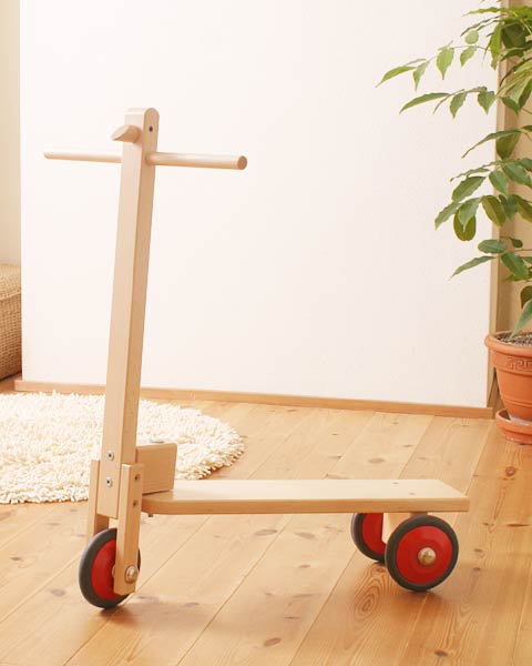 先日、かわいいWOODキックボードを購入した。都内のとあるインテリアショップでディスプレイされていたのをボンが気に入り、あまりにも気に入ってお店から動かなかったので、なんとなく購入したのだが、予想以上に気に入っているのだ。毎日室内で楽しく遊んでいる。キックボード、実は乗って立つだけでもなかなかバランスをとるのが難しい。初日は、危なっかしくて常に後ろで支えてあげなくてはならず、これは腰が痛くてたまらないなあと思っていた。ところが、なんと3日もしないうちに、片足で蹴ってゆっくりだがすい、すいっと一人で遊ぶことができるようになったのである。部屋のじゅうたんの上を行ったりきたり。ゆっくりだが、ちゃんとキックして進んでいる。バランスもしっかりとれているようだ。三輪車でいいのに、などとも思ったが、これは、実は幼児期に大事な、バランスをとることのトレーニングになって、とてもいいのではないかと今では思っている。さりげなくお顔がついているWOODキックボード。インテリアとしてもかわいらしく、プラスチックのおもちゃと違って部屋の邪魔にならないところが嬉しい。