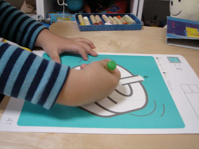 くもんのこどものたから箱ふと思いついて、随分前に購入してあった、迷路のワークをさせてみた。すると、ものすごく気に入って、「めいろする~」と叫ぶボン。そして、実は、簡単に出来てしまった。これは脳の発達によさそうである。線路などを指でなぞったりしていたのが迷路上達のキーだったのだろうか。