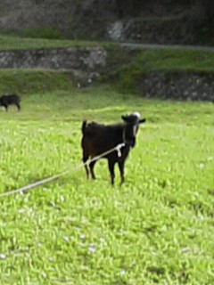 3時頃から畑へ三度豆の種を植えに行き帰りに愛犬さくらと時々寄るやぎさんの所へ今日は一人寄り道。近づきすぎたので逃げられちゃいましたのどかでしょう!!帰り道、きじが目の前にひら~り!!「ギョーオー ギョーオー」とこの間から声がしていてきじが居るんだなというのはわかっていたのですがまさか目の前に飛んで来るとは鳥好きの私はきじに釘付け!!雄のきじだったのできれいでしばらく立ち止まってしまいうっとり携帯電話のカメラで撮ったのですが点にしか見えずきれいなきじをお見せできないのが残念!!のんびり のんびりのひと時でした。