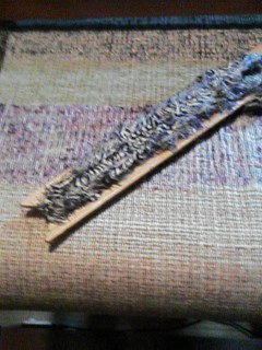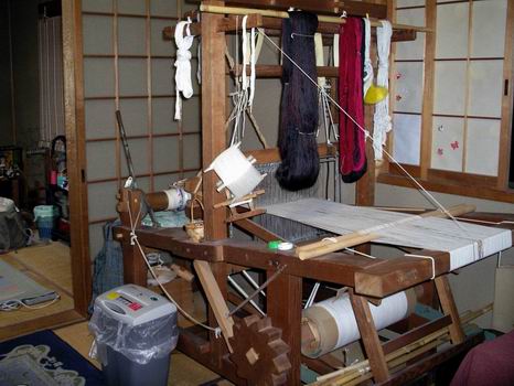 GWも今日で終わり。今日は一日中雨なのではた織機の位置変えをしました。 今まで手元が少し暗かったので織りにくかったのです。今日はホームセンターで工事現場などで使うようなランプを買ってきたので明日からは楽に織れるかな? これからは織りやすくなったのでまた色々な作品を作って見てもらいますね。お楽しみに