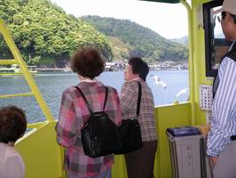旅行から帰ってもう一週間ですが買ってきたばかりのデジカメを持って旅行に行き写してきた絵をパソコンで整理してプログに載せようと思いサイズ変更やら何やらでやっと出来ました。旅行はお天気にも恵まれとても良かったです。どちらかというと珍道中でしたが・・・・・・行き先は同じ京都府の北の端、天橋立と舞鶴に行ってきました。現地到着後バスに揺られて50分ほどの所、伊根湾めぐりに行きました。伊根湾めぐりに船が出発するとかもめ・とんびとかっぱえびせんの餌をめがけてやって来るのです。(かっぱえびせんの餌は船内に売ってます。)動物好きの私も早速えびせんをまいて楽しみました。主人いわく「おい遊覧船の伊根湾についての説明聞いてるか?」「かもめに必死で聞いてなかった!!」主人は笑いながら「もうあかんやんか」ということで呆れ顔です。でも主人はばっちり舟屋の風景綺麗に撮ってくれていました。さすが写真が趣味なのできれいに撮れています。 この伊根湾めぐりバスの時間までまだ時間があったので2回乗りました。ちなみに今回はJRのぐるりんパスで行ってきたのでチケットを見せると何回でも乗れるのです。2回目はちゃんと伊根湾めぐりの説明は聞きましたけど・・・・やっぱりかもめととんびににせっせっせとかっぱえびせんやりました。面白かった!!夕方は宿屋に戻る前にJR橋立駅の横に温泉があったので入ろうか!!と言うことで温泉にざぶ~ん あぁ~いい気持ちでした。ぐるりんパスのおかげで無料でしたし。余計いい気持ち二日目はいよいよ有名は股のぞきに行ってきました。お天気も良く見晴らしが良かったです。 でもここに上がるまでがまた色々あってここに上がるにはリフトかケーブルで上がるんですが最初は二人ともリフトは恐いのでケーブルと思っていたのですが20分待ちと言うことで意を決して主人がリフトで行こうかと言ってリフトに乗ることに私は乗る段になって大丈夫かなと思っていると主人はさっと乗ってしまい「上で待っているぞ!」ひとり取り残された私はあーどーしましょう状態に!!でも仕方がないのでこわごわ乗りました。とにかく上を見て下は絶対に見ないように心がけやっと無事上についたときは若い兄さんに両方から抱えてもらって降りる羽目に主人は若い男の子に抱えてもらって・・・やきもち焼いておりましたくだりはケーブルだったので安心でした。それから最後は舞鶴の軍港に行きました。ここでもちゃっかり若い水兵さんと写真を撮ってもらいました。 主人いわく「俺の前で浮気をしてからに」ですって。写真撮ってたの主人なのにこんな時にしか若いお兄さんと写真取れませんよね。軍港には沢山の巡視船がありました。帰りにバス停でお会いした海軍の方は前の日に青森のむつ港から来た言っていました。北朝鮮のテポドン大丈夫ですかね?と聞きなしたらましたらそんな関係もあって来たのですけどと・・・・詳しくは言われなかったですけど・・・恐いですね。まぁ 色々ありましたが珍道中の楽しい旅でした。