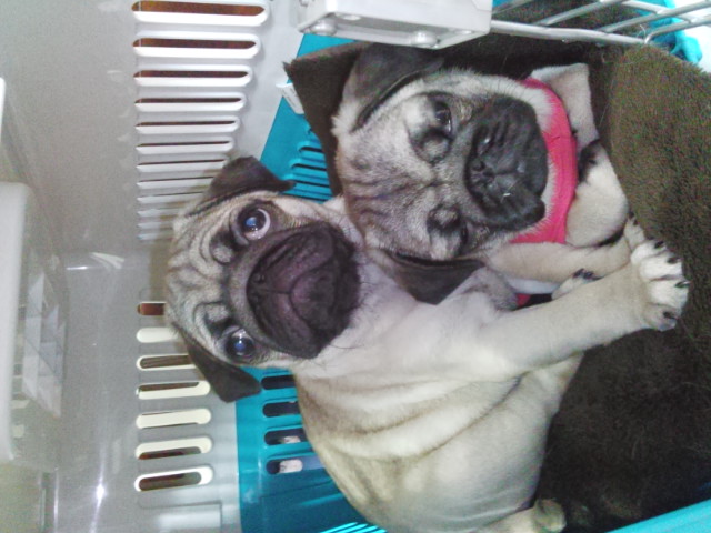 幸い誰も怪我しなかったけど 仔パグ達はビックリして震えてました。