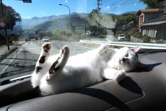 「お父さん、流れに合わせてのんびり走りましょう!」