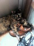 ノンちゃんは兄の足の匂いが大好き???なのか・・・外から帰った時の兄の足を追っかける。。。。兄がお風呂から出た後は知らんぷり。。。。きょうは、足の代わりに靴を抱いて・・・ お昼寝です