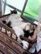 今年15才になる猫ジュン! 一日24時間のうち23時間は寝ている 食事の時間、トイレの時間以外はmyベットですやすや・・・ ときには高いびき、そして寝言・・・・ グニャグニャグニャ・・にゃーん 時々、のんちゃんとおいかけっこ! でも若いのんちゃんに着いていけず途中でダウン(@@) ベットにもどって又お昼寝 夏はいつもこの寝姿です 目が楽・・めがらく・・メガラック