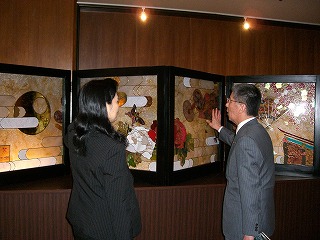 ステンド硝子アートデザイナーたちは、名古屋城本丸御殿復元を応援しています。ステンド硝子アートデザイナーたちは、「煌めきの未来」新妻聖子ちゃんを応援しています。「花鳥風月」が、ウェスティンナゴヤキャッスル1階ロビーに常設展示されています。この作品は、名古屋城本丸御殿復元応援のため制作したもので名古屋城の四季をイメージしました。ウェスティンナゴヤキャッスル1階ロビーに常設展示されることにより、世界中の人たちがホテルにお越しになり「和MODERN」を味わって戴ければ幸せです。また、名古屋城本丸御殿復元をご理解応援して戴けることを願っています。感謝をこめて「ありがとう」