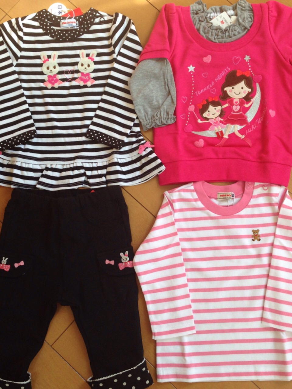 固定のものではないようなので、つい購入しました😊確かに…ですが、ミキハウスって必ず1枚は入ってるボーダー…もうピンクばかりで3枚目…いらない😱どーしよう…3枚も…😭