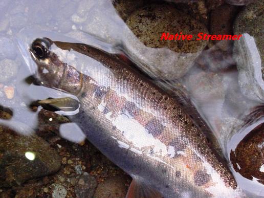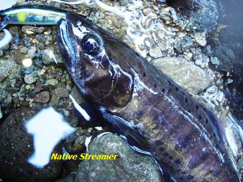 今日は今年最後の渓流のミノーイングをやりに山へ昨晩、台風でヒラスズキを狙ってて何も釣れねぇ~けど収穫になった夜更かししてしまい起きたのが6時なので、とっくに日が昇ってました。 入って暫らくしてヒットけれど、やたら強くて、やり取りしてる間にフックアウトなんとフックがグニャグニャに曲がってましたハァ~ けれど今日の目標は小さくても良いから一匹釣れればOKそして一年間、この川で釣りが出来たことを山の神へ感謝する事です まぁ楽しみましょうって!事で上へ上へと投げては歩き投げては歩き よかった~!一匹出ましたLURE Jackson Trout Tune55HW Color KY 昨日の大雨の割にはヤッパリ魚の反応がイマイチ出そうで出ない…出てもUターンするし… でも今年は色々な動かし方をマスターしたので気持ちは楽に投げれますが… そして…やったね!LURE Jackson TroutTune55HW Color RA 顔つき、スタイルと格好いいし満足です3投目でヒットしました そして次はこれやっぱりトラウトチューンHWです アマゴって感じの可憐さがあります ここでポイントを移動する事に次の区間は先週に叩かれているのを知ってます誰とは書かないが彼らは相当叩いたハズだ… よね? 今年最後に好きな場所をやって終わりにしようと思い入りました やっぱり反応は渋いです…当たり前、先週の方達プロですもん やっとこさ釣りましたLure YamaMinnow45s ヤマミノーは動きが機敏で着水も静かなのでプレッシャーには強いですね それにしても今日は空の青さが綺麗です写真までブルーが反射して写るぐらい真っ青です残り数箇所になり以前よりだいぶ浅くなった淵へ一投目…二投目…三投目は落ち込みの白泡の切れ目へ…ヒット~ ミノーはもう説明しなくて良いか?ちなみにHWです サイズは24cm尺には遠いけど格好いいですその上で一つ掌サイズ釣りました その後は大場所でカイモ(バイブレーション)で小さいのを一つこれで今年の渓流のミノーイングは終了となりました。 ロッド、リール、バルサ系のミノーは3月1日までメンテなどして冬休みですプララスチック製はメッキ、メバルへ 今年は渓流の初取材などもあり大変勉強になりました。 今年使用した主なミノーはジャクソン トラウトチューン トラウトチューンHW トラウトチューンLL カイモ エディ アクエリアスデザイン AQ40s AQ40sTGN AQ65s AQ65sTGN AQ70s3D スミス Dコンタクト ジェイド ヤマミノー 45、65でした さてと明日からはソルトで頑張りますか! メッキ釣り大会11月7日開催 詳細は下のメッキをクリック! 危うく?100名越えるところだったそうで受付終了しました!!エントリーした方々、当日お会い出来る事を楽しみにしていますね!