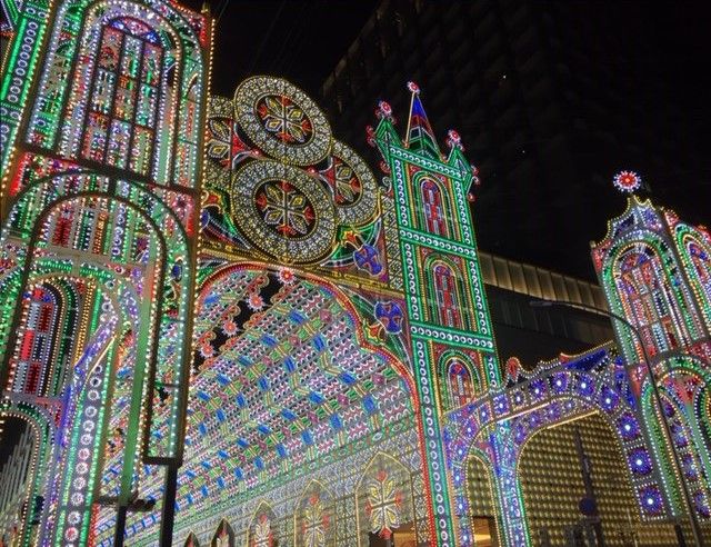 混んでる電車が嫌なので、車でルミナリエ 観に行ってきました。大丸で、買いたいものがあったので大丸に駐車することも考えましたが、予想通り、規制があって入庫できず、農業会館前のパーキングに入庫。徒歩で、南へ50m歩き、大丸方面へ。北へ上がると、歩行者天国になっている車道を30分かけて歩くことになります。なので、南下するほうが速いです。平日だけど混んでました。寒さを一瞬忘れる美しさでした。