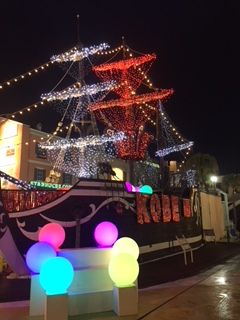 先に準備していたプレゼントだけじゃ淋しい気がしてきて、追加でアパレル小物でプレゼントにいいものないかな~と、垂水のアウトレット マリンピアへ。すっかりクリスマスの装飾に催し広場は、簡易のスケートリンクができていました。(この船の左側に設営されています)プレゼントする相手に喜んでもらいたい気持ちが先行し、なかなか決まりません。プレゼント選びのむずかしさを痛感しました。