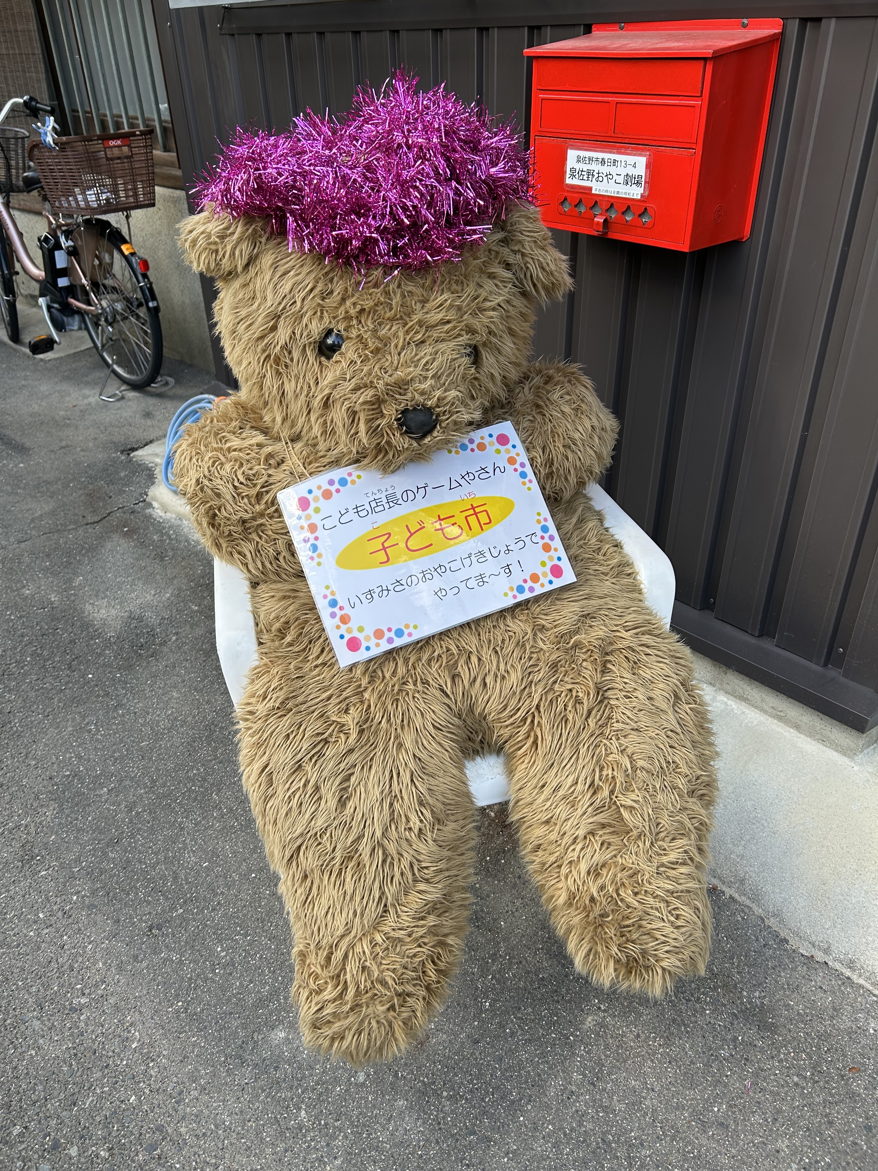 11月12日(日)、おやこ劇場の事務所にて「子ども市」を開催しました✨この日は近くで大きなイベント(むてんかスタイルマーケット!)も開催されていたので、たくさんのお客さんで賑わいました😊大きなくまちゃんがお出迎え〜😄久しぶりにポップコーンのお店も出しました!外でかわいいヨーヨーやさんが出店〜✨室内では、レゴゲームやさんに、コインおとしやさん、おかしつりやさん、わなげやさんが出店〜😊✨午後から雨が降ってきてお客さんが減ってしまいましたが💦、午前中はたくさんの方に来ていただいて、子どもたちも張り切っていました😄ご参加いただいた皆様、ありがとうございました☺️✨感想・何ヶ月かぶりの子ども市で、新しいゲームを作って行って、遊んでもらえるか不安やったけど、みんないっぱい遊んでくれたからよかった。雨が降ってきてお客さんが少なくなったけど、いっぱいきてくれて嬉しかった。・楽しかった。いつも通り面白かった。お客さんにリピーターがいて嬉しかった。 ・友達とお店やさんをしたり、お客さんが来てくれて楽しかったです。また次回もこども市したいなぁと思いました。 ・ヨーヨー釣りのお店 お客さんが来てくれて、楽しかった。次はスーパーボールやさんをやりたい。 ・娘の手伝いでヨーヨー釣りを手伝っていたのですが、今回は途中から雨が降ってしまい 外で出店していたので、お客さんくるかな〜…というカンジでした。雨の中でもチラチラお客さん来てくれたので、ありがたかったです。次回はどんなお店やさんしてくれるかな〜と楽しみにしておきます。