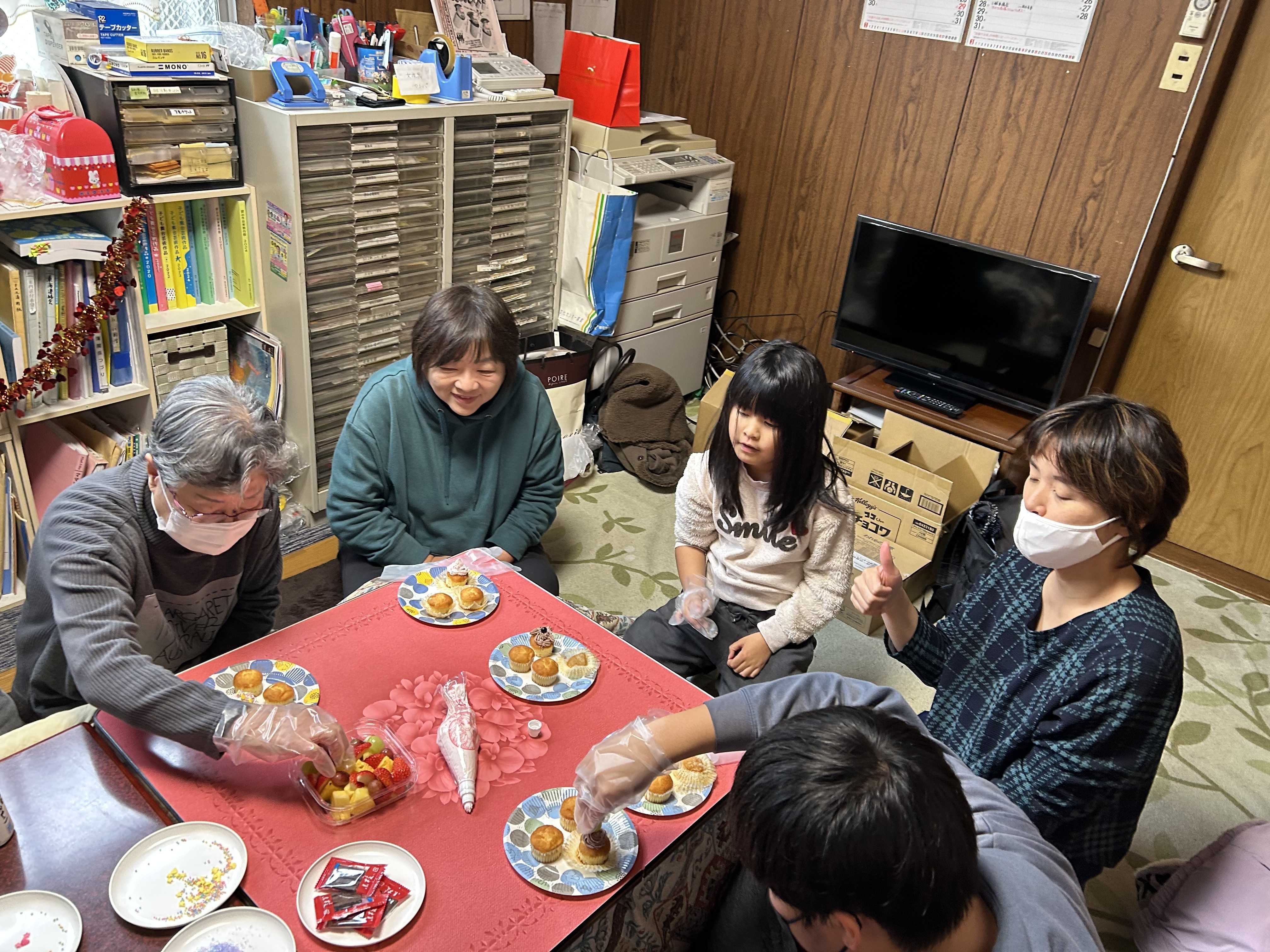 2024.12.25おやこ劇場事務所にて、クリスマス会を開催しました。インフルエンザ流行中で参加できなくなった子もいて、ちょっと人数が少なくなってしまいましたが、みんなでカップケーキデコレーションをしたり、プレゼント交換、謎解きゲームをして楽しみました感想・自分でトッピングしたカップケーキがおいしかったのと、プレゼント交換で自分が欲しかったものをもらえて嬉しかった。・プレゼント交換が楽しかった。謎解きが難しかった。・カップケーキのデコレーションは大人も もりもり盛れて楽しかったです。おいしく頂きました。謎解きクイズは大人も頭の体操ができて、こちらも楽しかったです。・今回、初めて親子劇場のクリスマス会に参加させていただきました。当日は 部屋に飾り付けをしたり、カップケーキをキラキラにデコレーションして、 みんな で 食べました。ケーキを作る時は大人も子ども達もワイワイ賑かで、私も歳を忘れて楽しいひとときを過ごさせてもらいました。プレゼント交換もワクワクしました。誘っていただき ありがとうございました。・カップケーキにデコレーションをしてなかなかしないことだし、いろんなフルーツとかクリームとか飾りとか乗せれて楽しかったしおいしかった!謎解きは自分のも出したかったけど、みんなにヒントを教えてあげたりできて嬉しかった!来年できるかわからんけどしたいなー