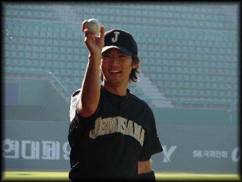 あ~先週の今頃は・・・どっぷりジェウクのジャージ姿に釘付けでございました・・・いろいろもうやらやらでユニフォーム姿のジェウクの様子は皆さん知ってるよねぇ~でもなぜか空港でのかっちょいい姿はどこにもあがってない・・・でも見てないあなた・・・どんな感じか知りたいよねぇ~ヘアースタイルはね~只今撮影中のトライアングルのヘアースタイル・・・ベストカップルのソックにも近いかな私が見た瞬間は『前髪くるりんだ~』って思ったの朝方まで撮影してたっていうからそのままに飛び乗ったのかしらってな感じそいでもってスーツは最初のチェミサマ来日の時のお揃いで着てたスーツだと思うの・・・てな訳で~こんなことしちゃダメなんだけど合成してみた~あくまでも合成ですからね・・・ソックの顔で、2006年のチェミサマ来日時のスーツ姿で~す我ながら上手にできたと思い披露してみましたこんな感じだったと思うんだけどなぁ~空港にいたみなさんどう思います そして3泊4日・・・最初から最後までご機嫌よく本当に野球を楽しんで帰国されたのでありました~帰りはチェックのシャツにジーンズにキャップだったそうです次回は出迎えは無理だけど新幹線お迎えがんばるぞ~