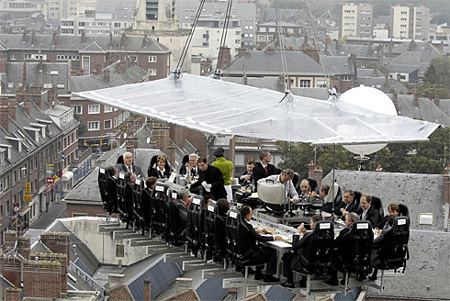 クレーンで吊らされているようですが、いくら三つ星レストランのメニューでも