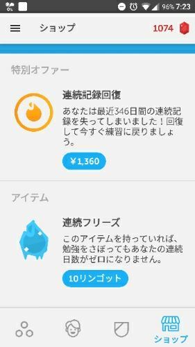 Duolingoって英語アプリを使ってます。 唐突ですがまず欠点から。 ・広告が多少鬱陶しい。なお且つ少々お下品。 まぁ、お下品なのは僕自身のニーズに合わせた結果なのかもしれないけど。 でも、あんまりそんな広告が出る様な行動をした記憶が無いんだよね。 2ちゃん(今は5ちゃんですっけ?)のまとめサイト見ることがあるのが唯一の心当たり。 ・時折フリーズする。 レッスン中に問題の不備を報告しようとすると時たま発生。最近は報告しないようにしているからほとんど発生してない。フリーズするとその時のレッスンの内容が失われるから結構嫌。 ・dogをアプリ側で発音する時ディーオージーと発音するみたいな読みの不具合がある。 但し、簡単な単語のみで発生しているので学習にあまり支障はない。 またあくまでこちらの回答選択時の機械側読み取り音声の不備で聞き取り音声が必須の時には発生しないので良しとしてます。 ・和訳問題の完成度はネイティブな日本人が監修してなさそうな完成度の低さがちょいちょいある。 和訳問題は全て単語選択(しかも区切りがおかしい単語もちょいちょいあるし)なのが残念。まぁ自由に作文させると回答の正解が大量にできてカオスになりそうだから選択なのは仕方が無いのだろうな。 それ以外は問題ないのでむしろそこを汲み取ることも学習の一環だと思って良しとしてます。 ・ネットが無いと使用出来ない。 回線使って広告も見たくないし飛行機の中でできるとうれしいのになぁ。 ・値下げがあって少し安くなったけど広告を削除、オフラインでの使用する場合有料。 便利な機能は有料。 まぁ有料なのはわかるけど月額料金が高額(月額1100円)なのがなぁ。買い切りで1200円ぐらいなら出す気になったのだけど。 と思いつく欠点がほとんどなく 逆に良い点を上げると ・単元ごとの学習がまぁまぁ。 一通りの文法、シチュエーションを分けて学習でき、到達度も分かる。 ・単語学習、和訳問題、英訳問題、発音問題、聞き取り問題と問題の種類も悪くない。 文章作成の際、単語単位での選択問題もあるのが若干アレだけど不満ほぼ無し。 ・間違った問題は最後に再度出題、正解するまで繰り返し出題されるシステム(発音問題は除く) まぁ、イライラする人もいそうだけど僕は気に入ってます。 ・状況に応じて発音問題、聞き取り問題は出題しないように設定すること可能 電車の中じゃ発音問題は無理だしね。イヤホン忘れたら聞き取り問題も電車の中じゃ無理だしね。 とキモのシステムがなかなか良い優良アプリなのです。 で。 このアプリはレッスンの1日のノルマを自分で決められます。アップデートなどで時折レッスンの内容が変わったりしてましたが現在だと1レッスン20問トータルで5-6分、間違えが多くて再出題が多くても8分てトコかな。 だもんでここ半年近く僕のノルマは1日3回のレッスンにしてました。 で。 このアプリ、連続学習記録がカウントされるのがモチベーション向上になって良いんだよね。 が。 昨日、どうやら忘れていたようなのです。 連続学習日数346日一年まであと少しだったのに。 記録と引き換えにお金を要求してきているのですがなんだか汚い商売を感じます。 ま、記録の為にお金を払う気は無いけど。 と言うかやった気がするのだけど。 証拠は何も無し。 むしろ途切れてることでやってない証拠はバッチリ。 かなりのダメージです。ガックシ。 でも、こういう所が分岐点です。 また、イチからコツコツ積み上げていくか これを機に違う学習に取り組むか。 前向きに今日は考えたいと思います。 duolingo(android) 今は結構オンライン英会話をやりたいんだよね。 なんだか気恥ずかしいけどDMMとかレアジョブとか試してみようかな。