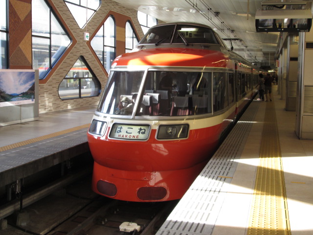 参連休弐日目、本日の帝都は気温34度が予想されていた。と云うことは、拙者が住む多磨地方の村々は36度くらいみておいた方がいい。悲鳴を上げたのが北海道出身の嫁さん。とにかく涼しい所へ脱出しようと云うことになったが、近場と云えば埼玉か山梨なのが現実で、是では余計に暑い。元相模原市民である拙者が考えた秘策は、ずばり「箱根」であった。嫁さんは、「もし噴火してあなたが死んだら余市の実家へ帰るしかなひから其れは困る」と云う。二人で行くのに、何故か自分だけ生きて帰って来る前提なのだから、可笑しくて堪らぬ。取り敢えず行ってみなければ分からぬので、四時に起きて旅支度をして新宿まで出た。一体どんだけ多磨の奥地に住んでんだ!と思われるかも知れぬが、早く起きたのには訳がある。七時発のロマンスカー「はこね壱号」に乗りたかったから。最古参のロマンスカーに乗る昭和の雰囲気が残る車体だ。始発のためか、ロマンスカーは空席が目立った。乗客の多くは小田原で降りてしまい、箱根湯本へ着いても乗客はまばらである。箱根登山電車に乗ったが、是また最古参の車両だ。或る意味いい記念になったかも知れぬ。八時五○分発の電車であったが、電車は空いてて座りたいところに座れた。時間が早いためか、噴火の影響か、実はよく分からない。乗った電車はエアコンも無かったが、涼しい風が外から来て其れで十分だ。やっぱり箱根は涼しい?強羅駅に到着せり噴火の影響は此処から本格的に始まっていて、ロープウェーに乗れないのが我慢ポイント。上空からの絶景を拝めないのはさすがに痛い。芦ノ湖まで行くためには、代行バスを利用することになる。バスが出る時間も40~50分に一本のため、時間になるまで強羅公園でも散策する。此の界隈では、少々暑いが苦痛ではない程度だ。強羅駅へ戻って、代行バスを待つ行列に並ぶ。箱根フリーパスを所持している前提で案内されていて、駅員が切符にスタンプを押していく。出発時刻になると、駅員の先導で行列は踏切を超えて、所定の乗り場で待機しているバスに乗る。此処ではターンテーブルがあって、バスは方向転換している。場所が狭いのだ。代行バスはけっこう混んでいた。桃源台まで30分程度で、仙石原などを経由して走っている。さっきまで晴れていたが、急に霧が濃くなってきた。霧と云うより、雲の中にいる訳だ。芦ノ湖は寒いくらいの気温なり海賊船に乗ったが、風が猛烈で「下界が30度以上なのが信じられない」くらいの寒さ(笑)。涼を得たいと云う目的は、もう有難過ぎるくらい達成できた。海賊船は、強風のため箱根町港の発着となっていた。箱根町港は、駅伝ミュージアムや関所のある方だ。霧も濃くなるばかりで、視界は30メートルくらい。箱根神社は、おかげで何だか幻想的な雰囲気を堪能できた。境内はそれなりに観光客がいたが、「通常こんな感じ」が分からないから、何時もより空いているのかは分からなかった。寒気を催しながら次第に下界へ降りて来た訳だが、うだるような暑さが徐々に込み上げて来た。箱根湯本もかなり暑くなっている。ロマンスカーVSEの車内に入ってホッと一息。新宿へ到着であります。弐種類のロマンスカーに乗る事ができ、少々得した気分であります。