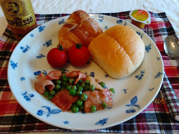 今年のお盆休みは鹿児島市から一歩も出ない静かな日々だった。食事の準備は何時も嫁さん任せで申し訳ないので、昼食は拙者が作る。作るなら少しは絵になったりネタになるものを作りたいとか考えてしまうのは悪い癖だ。まずは、ドイツ陸軍で盛んに作られていたとされる、えんどう豆とベーコンを使った野戦糧食。豆はグリンピースで代用です。もう其れ作るだけで精一杯だから、他は寄せ集め。リョーユーパンとフランソアの菓子パンを二人で割って、親戚から頂いたユーハイムのお中元に入っていたマンゴーゼリー、缶コーヒーは上司から頂いたもの。頂きものも有効に利用することで謝意に代えたい。翌日、スーパーで「宮崎県産ほうれんそうベジブレッド」なるものを発見。フランソアとは九州ローカルパンで、拙者は菓子パンをよく買っている。でも是は菓子パンではないから、どう味付けしようか迷っているうちにシナモンシュガーを見つけた。結局、パンに付けたのは冷凍食品のパスタ。早くも手抜きだなこりゃ。沖永良部産コーヒーの店「ノアコーヒー」で買った霧島珈琲羊羹と羽田空港で買ったキャラメルサンドも早く食べ切る必要があるので一緒にいただきます。もうちょっとまともなものを作ろうと冷蔵庫を眺めて、余りの玉ねぎがあることを発見!適当にコンソメ味のスープを作る。イタリアの料理番組を見ててペンネが食べたくなったので、パスタソースの余りとベーコンを加えて調理。久々のペンネ美味い!フランソアのクリーム入りクロワッサンと、御中元のユーハイム・バウムクーヘンも付けます。クロワッサンはシナモンシュガーを少し加える。さて、余ったペンネもさっさと使わねばならない。前回と同じ味付けだと飽きるから、アンチョビとキャベツを和えてみた。是も美味い!ニシムタで安かったパンケーキを合わせたが、プチトマト品切れで一個だけ置いてもサマにならないな。デザートはノアコーヒーで買った「えらぶ島珈琲ゼリー」と、先月鹿児島にやって来た鉄道仲間から頂いたケイクテイルもいただきます。美味しい物に囲まれて本当に感謝であります。★自宅BAR(と云うよりカフェ)プロイセンはこちらから