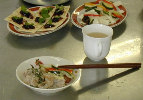 おせち料理 ~身近な材料を使った家庭料理~ 27年12月15日 スープの会 山本則子 正月は日本国民にとって一大行事です。豊作を感謝し、五穀豊穣を願い、 家族の安全と健康、子孫繁栄の祈りをこめ、縁起をかつぎ、神仏と共に海の幸や山の幸をいただく。 米を食べ、米を作り続ける安曇野の正月です。家族で新年の挨拶をして、朝茶を頂き、お神酒を頂ぶり雑煮を頂きます。★朝茶 お煎茶 らくがん ころ柿 勝ち栗 千べい お多福豆 大黒様(タクワン漬け)★御節 黒豆 2c よく洗って水に浸ける 水4c 砂糖50gから2c 塩大1/2 醤油大2 さび釘数本 柔らかくなるまで煮る。砂糖は好みで甘くする。 レンコン 酢水に漬けて、甘酢で煮る。 栗きんとん 皮をむいたサツマイモを小さく切って、くちなしでゆでて裏ごしする。甘露煮にお湯を足してゆるめる 栗を添える。 お膾 にんじん 大根を千切りして塩で水分を出して酢に漬ける。氷頭を添える。 a シイタケの旨煮・・乾燥したシイタケをしっかり水で戻します。ギューと絞って薄く切ります。 戻し汁少々砂糖醤油で煮る。 b タツクリ カリカリに炒る。ポキッと折れるまで。砂糖としょうゆ同量で煮立たせ、絡める。 くっついたらみりんで伸ばす。皿に一口ずつ取る。 c きりいか 砂糖醤油 に立たせ絡める。 d よろ昆布 砂糖醤油水ひたひた で柔らかくなるまで煮る。aからでdは一つの鍋で順序良く作ります。 一番だしの取り方・吸い物 昆布を水に浸ける(30分前) ・・そのまま火にかけ沸騰する前ブツブツ泡が出てきたら昆布を引き上げる 鰹節を入れて沸騰したら火を消して鰹節を濾す。…一番出しです。 ・・日ごろは水に昆布を細切り最後の仕上げに追い鰹・・・すべていただきます。★ ぶり雑煮 4人分 しいたけの戻し汁200cc 鰹節昆布の一番だし600cc 塩小さじ1弱(ブリの塩により加減する) みりん小さじ1 酢小さじ1 醤油大さじ2(最初1 仕上げに1)鍋に入れる 厚手の本ブリ1人1/4・・うろこをとって塩を刷り込む。 作る時に、ボールに入れて熱湯をかけ、さっとざるに開け生臭みを取り濁りを押さえる。 大根 2cm 扇型 ニンジン4cm 梅の花 ごぼう15cm 斜めの薄切り・ササガキ ナガイモ3cm 3cの短冊 ネギ25cm 3から4cの輪切り 椎茸薄切り(または旨煮) 紅白のかまぼこ1/2(半月の半分)切れに切る ゆずの皮を薄切り もちは苦餅(くもち・縁起を担いで苦がつく事を忌み嫌う)は避け29日以外につく。 1人 1/2に切って、焼き、膨らんだら手でつぶして熱湯につけておく。 固くなったら盛付ける直前になべの中で一煮立ちさせる。 (レンジの時は、直火で焼き色のみつけて、お湯を入チン膨らめば柔らかくなり簡単。) 1 おなべに、しいたけの戻し汁、一番だし、ブリ、ネギ以外の野菜、塩みりん酢をいれ、 火にかけ沸騰したら灰汁を取り、中火で煮る。 2 材料が柔らかくなったら、ネギをいれ柔らかく煮て 醤油 味見をして味を調える。 少し濃くする。 3 おわんに、もち、それぞれの具を盛り、上にしいたけ(旨煮をしたとき)、かまぼこニンジン、 ネギ(青物)を色よく飾る。 最後にゆずの薄切りを飾る・・餅を のどにつまらせないように!!★三盛(たつくり きりいか みかん等)・・お祝い年越しなどに盛り合わせる。 黒豆 昆布 栗きんとん おなます 見通しの良いレンコンを盛り付ける 別にかずのこ 塩水で塩ぬきして手でちぎる。金色のしょっぱいのを頂く。鰹節の出汁に漬けても良い。 おたふく豆 伊達巻き・・卵と出汁 砂糖 塩で味付けて焼き、ラップでくるむ。 野菜ぶりやサケのあらの醤油味の煮物 早吸い物(とろろ昆布白魚醤油)