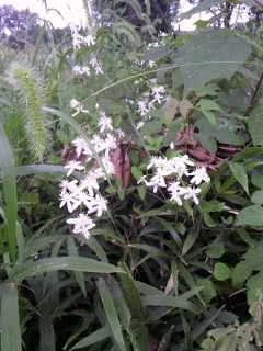 犬の散歩をしていて、偶然みつけました原種のクレマチス(テッセン)ではないかと思われます真っ白で、小さめですが目をひきます。自然にこんなかわいい花が咲いているなんてびっくりです西原村って、素敵なところです