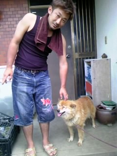 愛犬パンチもう老犬で夏ばて気味でしたが、次男の帰省で元気になりました!また会いに来てね