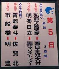 第5日夕方の部・2試合が一番魅力的、天候も保ちそうだったので、観戦予定を前倒しした。第2試合・市船橋アルプス横の1塁側内野指定席上段(屋根付き)を予約。【青藍泰斗(栃木) 4-5x 佐賀北】1塁側から佐賀北の応援。青藍が先行、佐賀北が追いつく展開で延長タイブレーク。無死1・2塁から、青藍が強攻策失敗で0点、その裏に佐賀北が定石通りの送りバント→スクイズを各々絶妙の位置に転がして逆転サヨナラ勝ち。この勝ち方は実はカッコいいと思う。【市船橋 2-6 明豊(大分)】市船橋の応援。アルプス席は隅々まで満席。船橋市の人口は東京23区・政令指定都市以外の「市」で全国最大の65万人。新住民も旧住民も多い、地方競馬(船橋ケイバ)と中央競馬(JRA)の中山競馬場がありながら「スポーツ・健康都市」を掲げ、公立病院撤退のご時世に、市立医療・リハビリセンター建て替えの予定。同市も出資する第三セクター「東葉高速鉄道」の新駅を既に建築中、その駅前に移転…という景気のいい話である。未利用地(自然)が広大にあり、近年は「住みたい街」の上位の市立高…普通科・商業科に加えて、1983年に公立校では相当早く体育科を設置。サッカー・駅伝・野球・バスケ・体操・水泳・吹奏楽・ダンス(チア)・簿記など多くのスポーツ・文化系部活が全国区の人気校。ただ…明豊が強かった。得点差以上の力の差…正直、もう1回やっても、勝てる気がしない完敗。ランナーが1人、2人出ると、2塁打・3塁打で全部返す。「チャンスに長打」は強者の証である。市船は6回以降、チャンステーマ「市船ソウル」で2点を返すが及ばず。同校の一体感のある応援は、甲子園で習志野・拓大紅陵・木更津総合・専大松戸・成田・中央学院が繰り広げてきた「千葉の応援文化」だと思う。グラウンドもスタンドも見事でした。(ダンス部チアは「倍速」かと思うほどのキレ)1塁側の盛り上がりは体感できたので、3塁(明豊)側から見た「緑一色に染まった市船応援」の動画をいくつか観てみようと思う。尚、この日に応援した2校の応援色は共に「緑」なので、失礼のないように、手持ちのマフラータオルの中から唯一緑の「JR東日本」(社会人野球)を持参した。