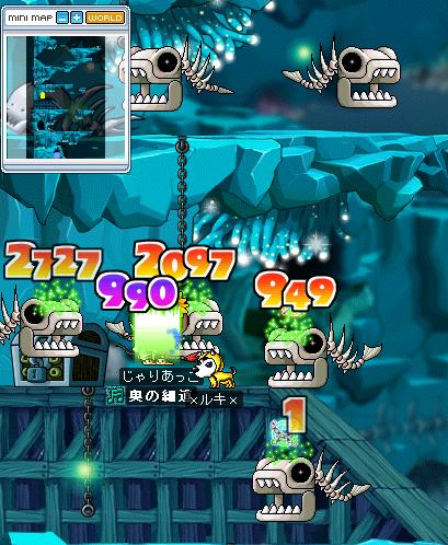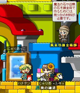 こん(^-^*)/コンチャ! 蝉の声がすっかり聞こえてこなくなったこの頃ですが、午後、珍しく、ミンミンゼミが1匹鳴いてました^^夏も終わりに近づいたかな・・・今日はメンテ日でしたねメンテ終了を待つ間、昨年から放置しがちだった、HP修正作業などをしていました^^;メイポを始めるまでは、実は”とてもまじめなテーマ”のHPをやっていましたσ(^_^;)アセアセ...今は、相互リンク追加作業と、掲示板くらいしか動いてないですが・・・このHPは、1999年からやっていて、消すのはもったいないので、半休止状態のままこのまま置いておくつもりです^^さて、今日のめいぽ~メンテ後は、新しいクエが追加されたこともあって、拡声器の内容ががらりと変わったりしますね今度のクエの1つに、スライムのねばねばの液体1000個必要なのがあるとか?拡声器で、ねばねばの液体1個数百メルで募集がかかってました・・・しばらくは、エリニア周辺マップは、高レベ狩人で混むでしょうね・・・そんなゴタゴタとは無縁な、今日のじゃりキャラは、再び、エオス塔内へ・・・^^;今日こそ、ビートラビット1000個クエを消化するぞ~と意気込んでみたものの・・・200個↑集まった時点で挫折しました('〇';)もうちょっと 沸きがよくなって欲しいです・・・ちょうど、弩友 ハナsがインしてきたので、お手伝いに変更~σ(^_^;)とりあえず、途中集めた、道迷い兵クエを消化して塔書20枚もらって、ドアでルディへ戻る^^;このドア、狩場からアイテム売り&補給のためだけじゃなくていろんな用途で使えて便利ですね^^vルディから、下町経由で海マップへ移動~アクアリウムでハナsと待ち合わせる久しぶりに海に来たので、ずっと受け損ねている金魚クエを動物園にいるニュズ?から受ける動物園に来たのはこれで2回目です^^;入り口すら覚えてなくて、ハナsに案内してもらいました;;さらに、アクアリウム←から深海へ移動し、やっと海の魔女カルタのクエを受ける(これで、今度金魚PTに入ったらクリアできる?^^)さて、用事も済んだことで、イカマップへ移動し、グル狩り開始今日は、順調に狩り進むなんだか、調子出過ぎて、いつもより狩り速度が速い気が・・・途中で、狩り休憩を入れる(・_・;椅子に座ってゆっくりしようと思ったら・・・じゃりキャラ後ろで、ルキが↑へ↓へと落ち着きなく漂ってる?これじゃ、ゆっくりできないので、ルキを格納する^^;ハナsから、恒例?の魔法の石をいただくm(_ _)m しばしの雑談の後、狩り再開SDTでしたが、装備ドロポは何も出なかったですね(ノ_-;)ハア…それでも、今日は墓ドロポなし^^v経験値もそれなりに、上がる落ち