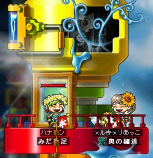 こん~今日の大阪は、まだまだ暑かった…ε=(-д-`)エアコンが要らなくなる日はいつ来ることやら。。。さて、今日のメイポは~ずっと、放置し続けていた、地球防衛隊方面のクエを消化することに・・・^^;とりあえず、エオス塔を下る、下るだけなので、徒歩で行っていたら、道迷い兵の前を通りかかるせっかくなので、塔書クエを受ける^_^;塔書クエ品を集めながら、下っていると、弩友 ハナさんが、ひさびさメインで、イン~このごろ、ずっとサブを中心にやってきたようですが、今日はメインをレベ上げするそうですこれはお手伝いに行くしかない!^^v旧から船でルディへ向かうとのことなので、ハナさんの到着を待ちながら、塔書クエ続行、あわよくば、ビートラビットクエ消化をもくろむ^^;しばらくして、船に乗ったハナs、外でバル船を観戦していたらしいバルの反撃の余波をくらって、墓ドロポ~とのこと;;再度ハナsの到着を待ちながら、とうとうエオス塔1階まで徒歩で下りてしまいました(・_・;ビートラビットのほうは、沸きが悪くちっとも集まらなかったのですが、塔書クエ品の方は、2人分↑集まる^^v(゚ー゚☆キラッここで、はたと閃くたしか、塔の中からは、町へドアを出せるはず・・・道迷い兵の前から、ドアを出すと、当然その先はルディ~^^v急いで、塔書を使い、74階あたりまで飛んで戻る残りは、徒歩で移動(ノ_-;)ハナsがルディへ到着後、3分、やっと道迷い兵まで戻ってくるε- ( ̄、 ̄A) フゥーまず、クエ消化^^ 塔書20枚ゲット^^vそして、ハナsがルディにいることを確認して、ドアを出す~ルディへ行き、ハナsをグル招待、塔書用ETCをハナsに渡して、再びドアをくぐって、道迷い兵前へ案内する^^ハナsも、塔書ゲット^^v残っている、ドアをくぐり、ルディへ帰る~なんか、ちょっと得した気分ですね(^^)ドア、便利です (^・^)さて、今日の狩場は、ハナsの希望で、Mバイキンですここでは、プリはほとんど役に立ちません氷メイジさんなら、随所に安置狩りできるところがあるようなのですが、、、いかんせん、レイは攻撃範囲が狭い。。。バイキンに届きません;;なので、ヒール&HS、たまに、ドラゴンで、補助させていただく(・_・;MGなしでも、なんとか順調に狩り進んでいたのですが、後半で、いきなりの強制落ち・・・しかも、ここまでSSソフト起動忘れに気付く(ノ_-;)戻ってみたら・・・ハナsが居ない・・・ハナs「墓出しちゃいました。。。」(T_T) ということは・・・ハナs「狩り開始時より、-1%ですね・・・」Y(>_